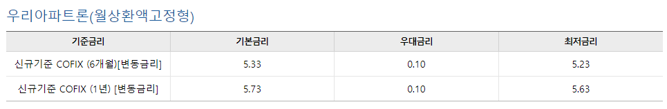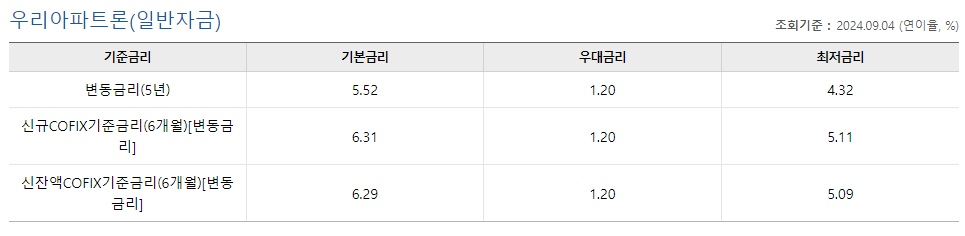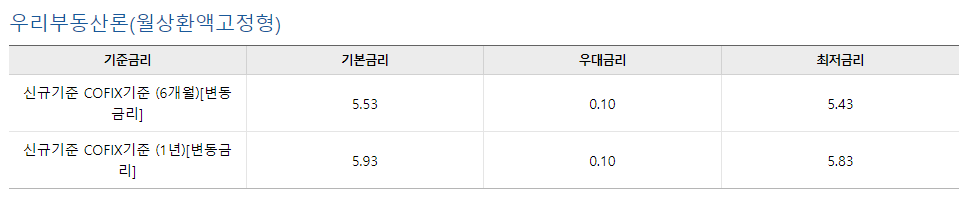 우리은행의 아파트담보대출 금리는 어떨까요? 우리은행은 다양한 주택담보대출 상품을 제공하고 있습니다. 각 상품마다 금리 조건이 조금씩 다르니 자세히 살펴볼 필요가 있죠.