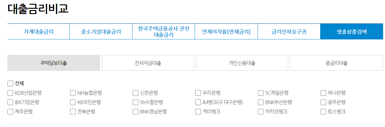 은행별 주택담보대출 금리 비교