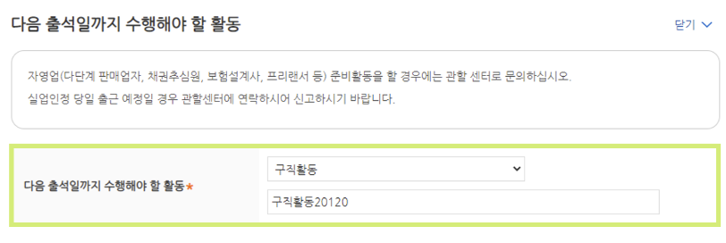 - 구직 활동 증명: 이력서 제출, 면접 참여 등